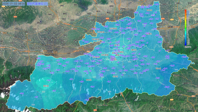 1月2日08时西安市气温实况色斑图