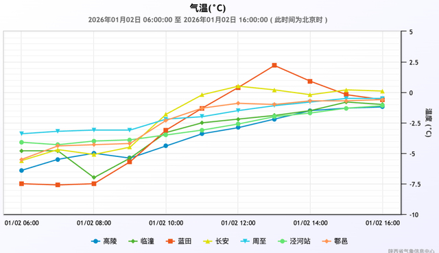 1月2日06时-16时国家站气温变化趋势