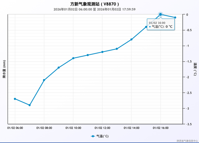 1月2日06时-17时方新气象观测站气温变化趋势