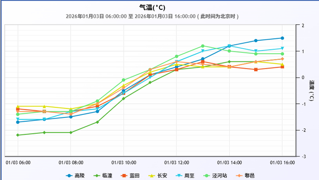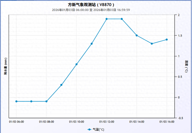 1月3日06时-16时方新气象观测站气温变化趋势