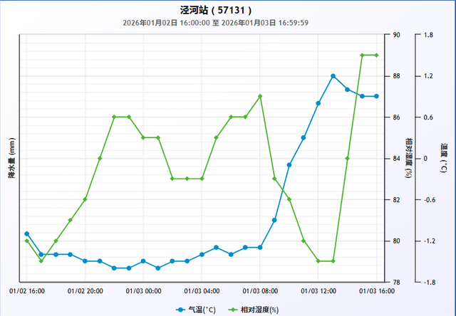 08时实时气温-1.3℃ 相对湿度87%