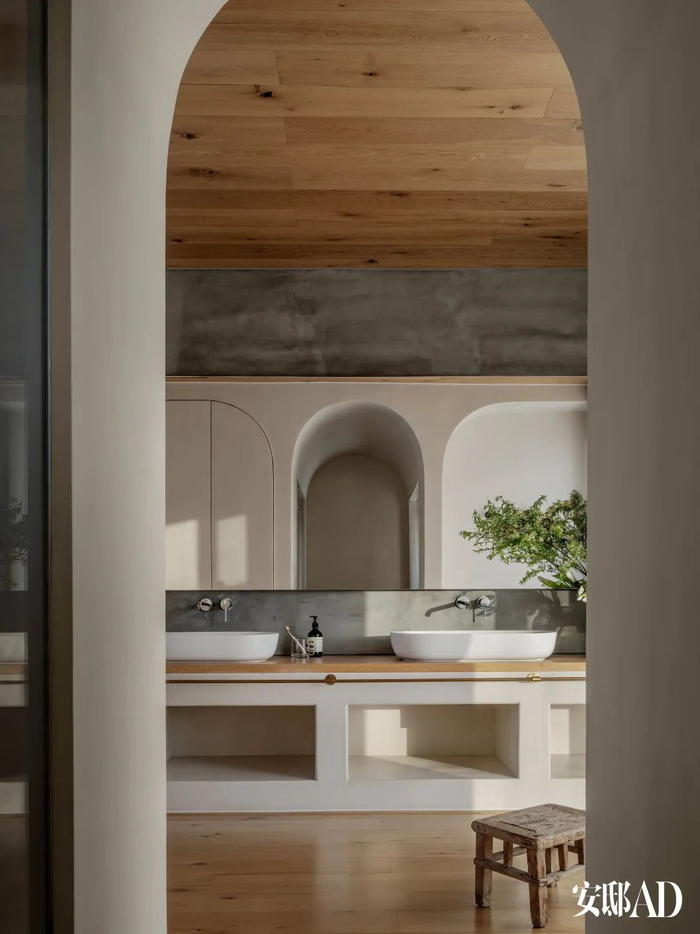 雕塑、绘画、书法、屏风、家具、书籍、摆件散布于光的格局之中,行动线与展陈思路相合,将目光引向风格多元的藏品。在这里,无论是会客还是饮茶、办公还是创作、行走还是休憩,建筑与艺术都是令人瞩目的。居住区朴素且克制,体现出人在艺术情境之中所怀有的谦逊和虔诚,将宋代画作凭栏看世界的眼光带入现实生活。