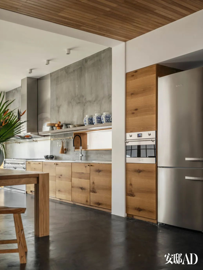 “保留粗糙的表面是为了显现建筑的本质,并非只展示混凝土。” 程晖认为,符合建筑逻辑和功能需求的基本呈现自带审美价值,当空间布局处理得足够舒畅时,未经修饰反而显出思想的形态,更具感染力。在某种意义上,这种去装饰化的倾向、技术理性与艺术野性共生的路径也是主人的生活态度。