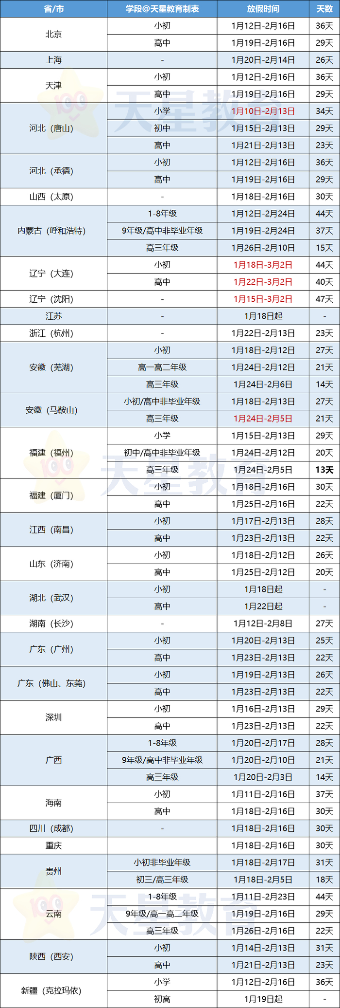 一起来看看你所在的城市寒假放几天↓↓