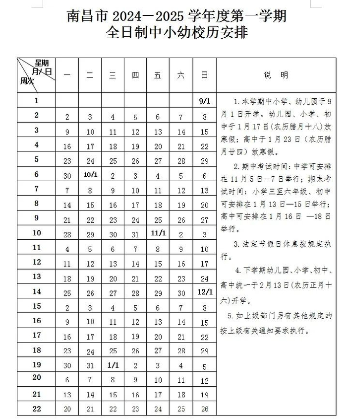 南昌幼儿园、中小学放假安排