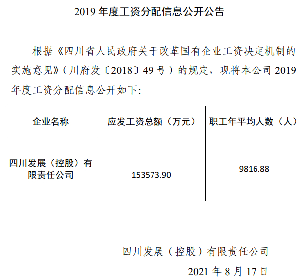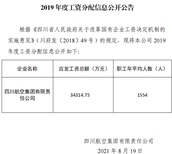 2021年8月18日—8月24日,四川航空集团、四川发展控股公司、四川华西集团、四川省国有资产经营投资管理公司、四川省商业投资集团、四川省有色科技集团、四川省有色科技集团、四川富润企业重组投资公司等8家企业在官网陆续披露了2019年度应发工资总额和职工年平均人数。