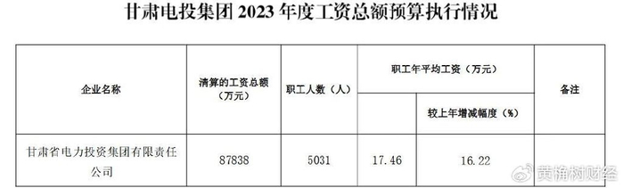 甘肃省电力投资集团2023年的职工平均年薪同比增长16.22%。