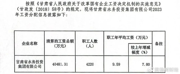 甘肃省水务投资集团2023年的职工平均年薪为9.59万元。