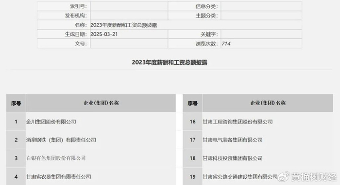 2025年3月21日,甘肃省国资委在官网披露了甘肃28家省属国企2023年度职工工资情况。