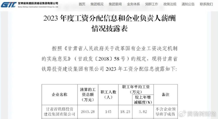 位居榜首的是甘肃省铁路投资建设集团,它2023年的职工平均年薪为18.23万元。