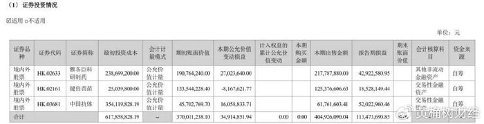 清仓雅各臣科研制药(02633.HK),投资收益4292万元;清仓健倍苗苗(02161.HK),投资收益1853万元;清仓中国抗体(03681.HK),投资收益5202万元。