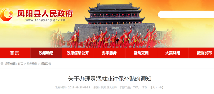 凤阳县关于办理灵活就业社保补贴的通知