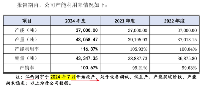实际上,江西同宇项目已经于2024年7月开始投产,处于设备调试、试生产、产能爬坡阶段。