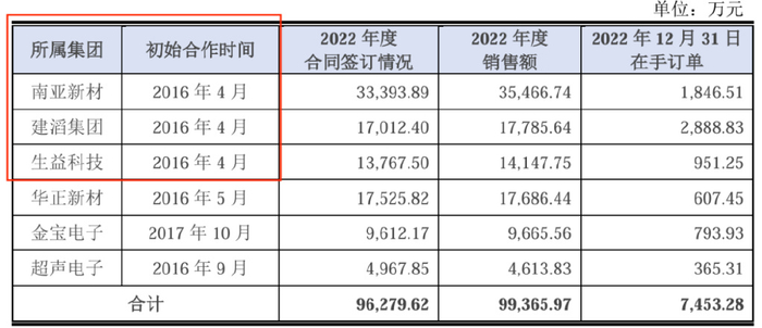 2015年12月,同宇新材正式成立;2016年4月,公司正式投产。同月,公司就开始与南亚新材、建滔集团、生益科技展开合作。