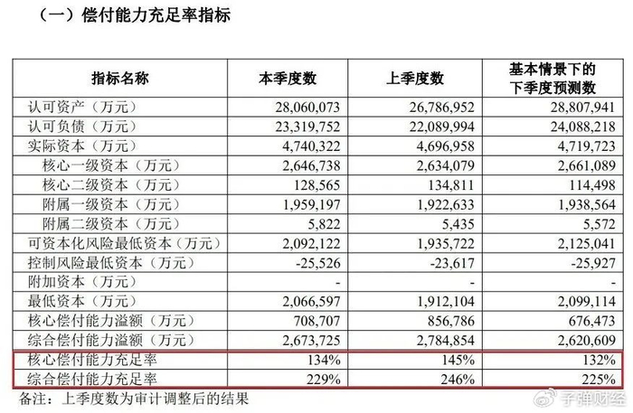 截至2025年一季度末,其核心偿付能力充足率为134%,其综合偿付能力充足率为229%。较上季度有所下滑,同时预测下季将继续下滑。