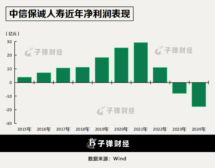 自2023年中信保诚人寿净利润盈转亏,2024年中信保诚人寿亏损进一步扩大至17.65亿元。