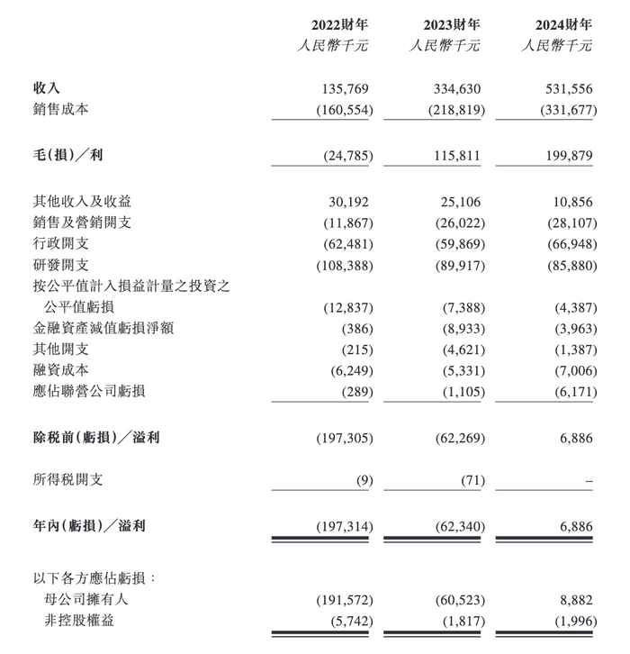 同期,年内溢利分别为-1.97亿元、-6234万元和688.6万元;经调整溢利净额分别约为-1.98亿元、-6104.9万元和1337.5万元。