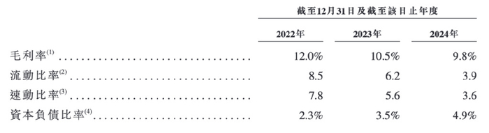因此,这也影响了公司整体毛利率的下滑,报告期内分别为12%、10.5%及9.8%,2024年的整体毛利率已经跌破10%。