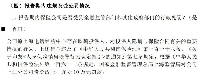 2025年9月,因大都会人寿原上海电话销售中心存在“欺骗投保人、隐瞒保险合同重要情况”等违规行为,国家金融监督管理总局上海监管局对公司上海分公司责令整改,并处罚10万元。