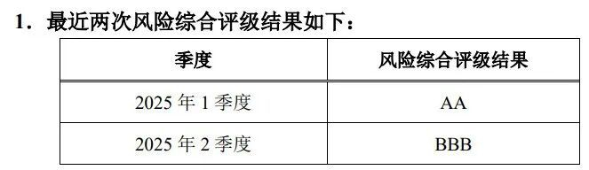大都会人寿风险综合评级从一季度的“AA”级降至二季度的“BBB”级,直接下降两个等级。(编者按:保险综合评级结果分为A、B、C、D四级,其中A级又细分为AAA、AA、A三级,B级分为BBB、BB、B三级,C、D级为风险预警或高风险级别。)
