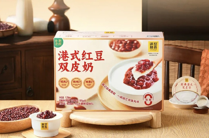 在产品上,满记甜品推出便携式杯装杨枝甘露、碗装双皮奶等产品,进入电商、零售便利店以及山姆、盒马等渠道。