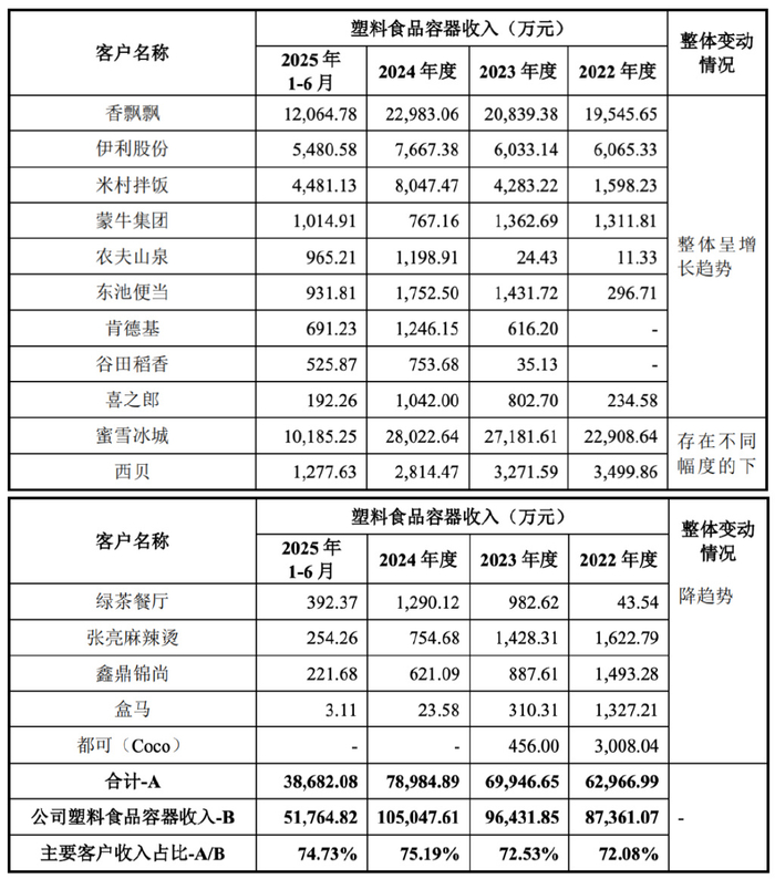 新天力对第一大客户蜜雪冰城塑料食品容器销售收入从2022年的2.29亿元增至2024年的2.8亿元,年均复合增长率10.6%。