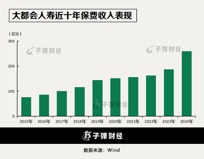 直到2024年大都会人寿保费迎来大幅跃升,达到259.7亿元,同比增长超38%,远超行业5.7%的平均增幅。