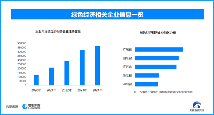 从区域分布来看,广东省、山东省、江苏省绿色经济相关企业数量位居前列,三个省市数量总和超过75.3万余家,占企业总数的29.58%。