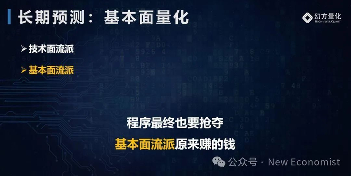 梁文锋说,人类投资者分两种:一是技术面流派;二是基本面流派。现在量化程序主要是赚技术面流派原来赚的钱。当前,技术面流派赚钱已经很难了,每天做同样的事,使市场有效性大幅提高。未来几年赚钱会更难,因为技术面上,程序已远超一般人类水平。量化私募的进步也符合摩尔定律,每18个月投资能力翻一番。