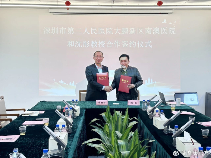 在全体与会者的共同瞩目下,龙脊康首席专家沈彤教授与深圳市第二人民医院大鹏新区南澳人民医院党总支书记、执行院长杨安群签订了特聘协议书,标志着双方合作的正式开启。