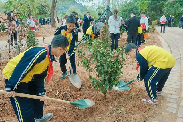 少先队员动手植下“红领巾林” 陈天旭/摄乘着植树节的东风,全省首个北回归线青年林公园在增城揭幕,致力于打造集教育、实践、体验于一体的青少年绿美思政教育阵地,深入推进“百千万工程”,助力环南昆山—罗浮山引领区建设。