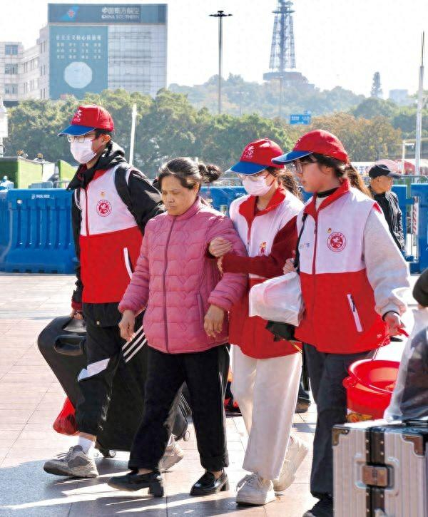 大学生志愿者在火车站帮助视障旅客(杨紫云供图)春运期间,2025年广州青年志愿者服务春运“暖冬行动”开展,组织志愿者在火车站、机场、客运站以及高速公路多个服务区等共计75个点位提供服务,累计组织2.3万人次志愿者上岗。