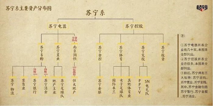 苏宁系主要资产分布图(作者根据公开信息整理)
