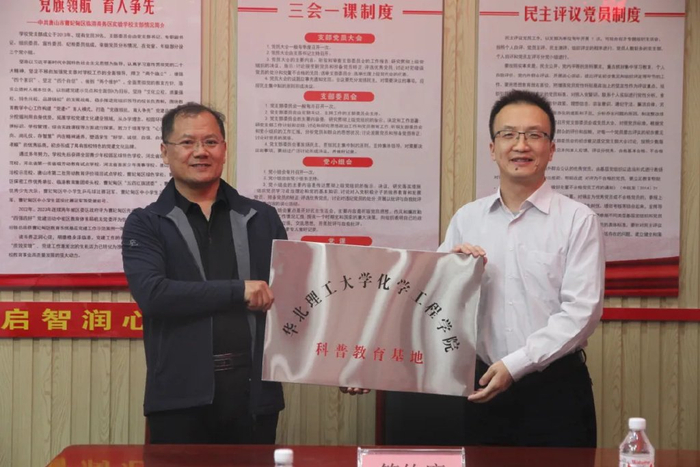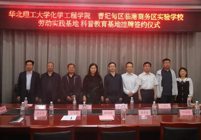 5月8日,曹妃甸临港商务区实验学校与华北理工大学化学工程学院举行劳动实践基地、科普教育基地签约暨挂牌仪式。