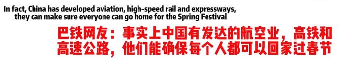 巴铁网友对中国很了解,他说中国有很发达的航空业,还有高铁以及高速公路,能保证大家顺利回家过年。