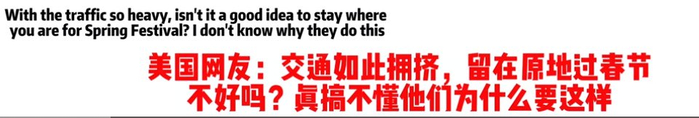 美国网友觉得交通这么拥挤,留在原地过春节就好,搞不懂大家为啥非要折腾。
