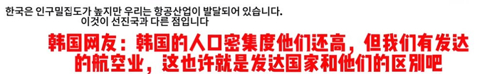 韩国网友拿韩国发达的航空业和中国对比,认为这是发达国家和中国的区别。