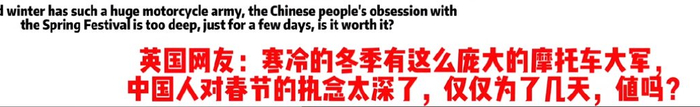 英国网友对春运的摩托车大军感到惊讶,质疑中国人对春节的执念是否值得。