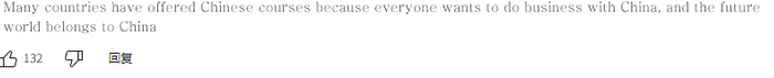 希腊网友说“许多国家开设了中文课程,毕竟谁都想跟中国做生意,未来的世界是中国的”,还有西班牙网友讲“就连小朋友都知道世界的未来是中国的,我们还有什么理由不去相信未来是中国的”,以及阿根廷网友提到“以前英语主导世界,现在是中文正在拥有世界”。