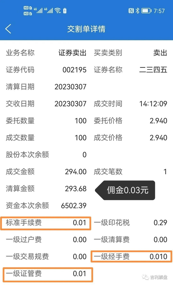 计算下,佣金=294*1/10000=0.03元(四舍五入)
