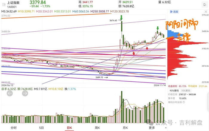 上一篇解盘还是发表于11月5日《吉利解盘:守得云开见月明,B浪反弹看向哪?如何应对?》,提醒了11月8日时间窗口见高点