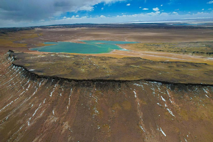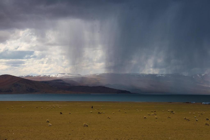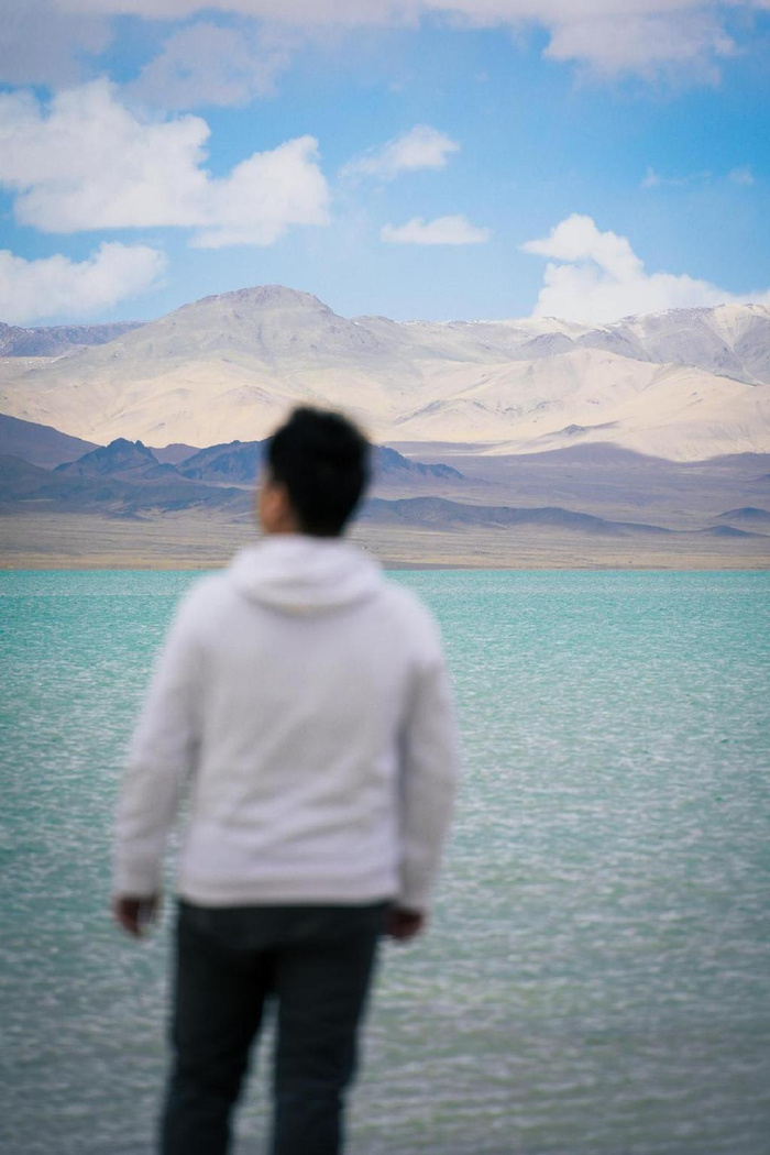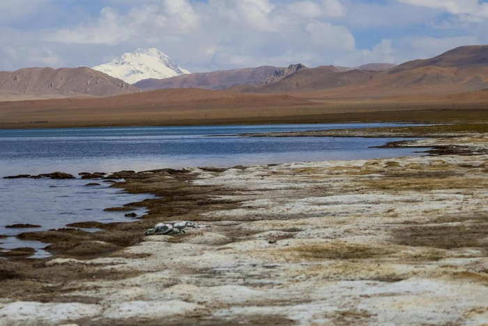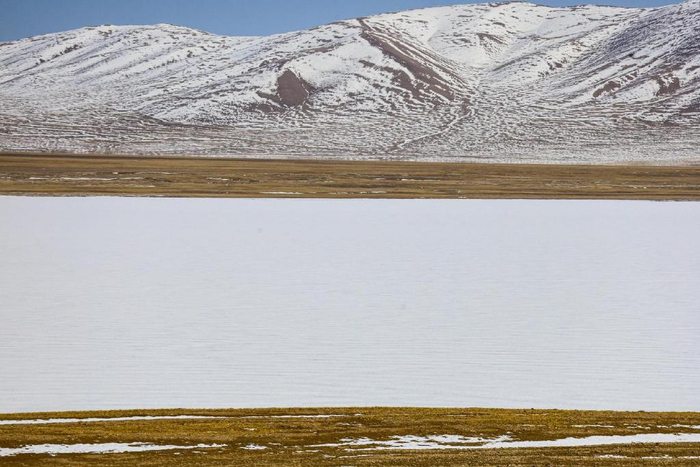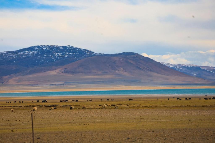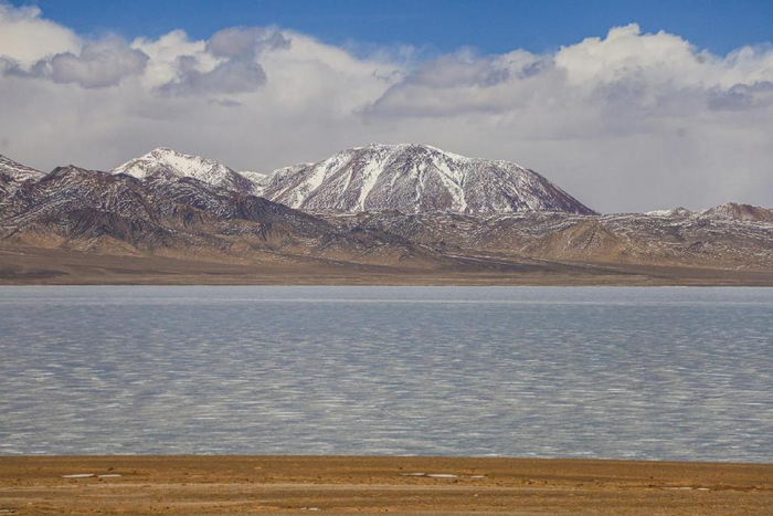 在海拔4396米的地方我们邂逅了一个美丽的咸水湖,湖水清澈,呈蓝绿色,名曰洞措。这是我们阿里“一措再措”之行里看见最多渔鸥的湖,湖边白色的盐碱向远处延伸,一直到雪山脚下,蔚为壮观。