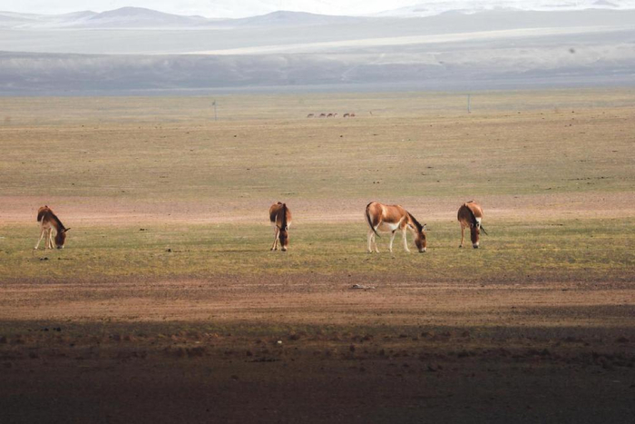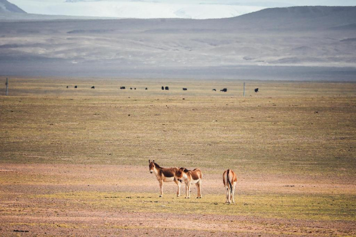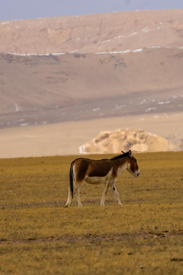 就在进入县城的时候,一排排藏野驴正在自顾自的吃草,朋友说驴子完全不把人放在眼里,气焰太嚣张了!我想这正是羌塘保护区多年来保护工作的一个缩影,曾经科考队都能看见几只野生保护动物,如今游客沿着平坦的道路便可随时目睹这些高原上的精灵!