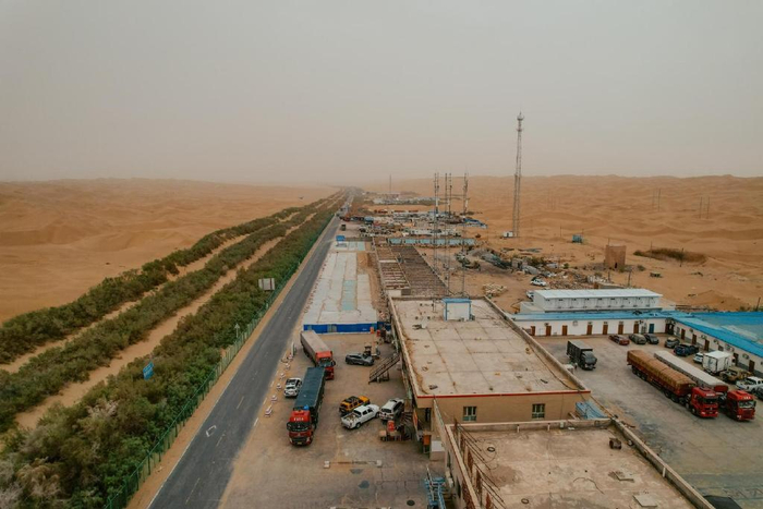 在沙漠腹地有一处塔中镇,是南来北往唯一的补给点,这里算不上城镇却有着餐馆、酒店、修理店等众多设施,一切都因塔中油田而兴起。人类禁区因为资源也能被大力建设!
