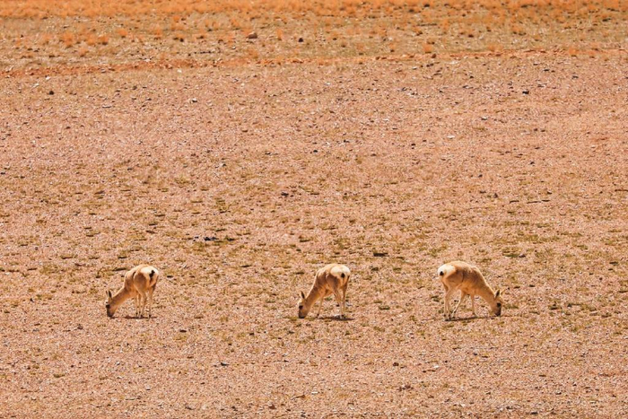 那曲尼玛县到阿里改则县只有三百多公里,却是羌塘无人区从湖盆地貌向高寒草场转换带,我们也从“极地那曲”进入到了“天上阿里”,一路风景如画,野驴、藏羚羊很多,他们悠然漫步,静静吃草,和大自然和谐相处。