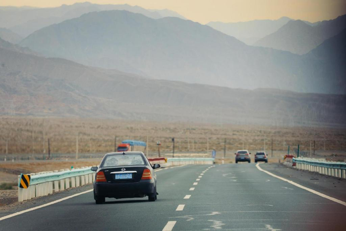 托克逊附近的地貌完全是外星球的感觉,高速公路在黑色的大地里面蜿蜒,坡度和弯度简直比国道还惊险。