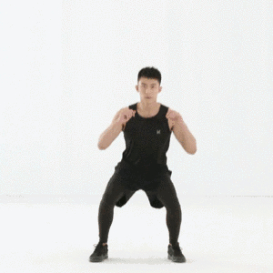 动作标准:站立状态,跳跃的时候打开双腿,向外站姿,然后双手向头顶,再次跳跃,恢复站立姿势。动作进行30秒,重复4组。