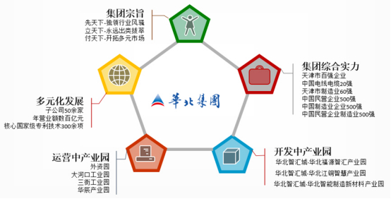 天津华北集团成立于1999年,经过二十年发展,现已成为制造业为基础、金融业为支撑、物流业为纽带、产业城为平台的大型综合性集团公司。集团坚持实业为先,多元发展。面对当前国内和国际经济形势,积极响应经济“新常态”、实体产业发展“新思路”。集团以“构筑中小企业产业发展平台,助力实体经济”为指导思想,依托实体产业,立足产业开发运营,集“园区开发、运营服务和产业投资”为一体,打造新兴产业生态链与专业化产业平台,助力产业发展。