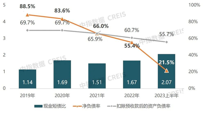 在降负债方面,滨江集团积极减杠杆、降成本,狠抓财务稳健。根据2023年半年度报告,滨江集团净负债率21.5%,大幅降低33.9个百分点。有息负债较年初大幅减少超110亿元,在当前360亿元的基础上,计划2024年再降10%以上,现金短债比2.07,可有效覆盖短期债务。