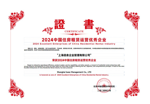 base佰舍成立于2008年,是锦和集团旗下服务式公寓品牌,深耕当地市场,具备强大的设计改造和服务式公寓运营管理能力。本次大会中,base佰舍凭借卓越的运营、管理和服务,持续进阶的产品能力和品牌发展,位列“2024中国住房租赁优秀运营企业”。